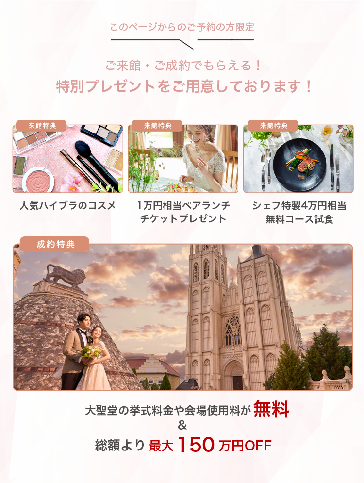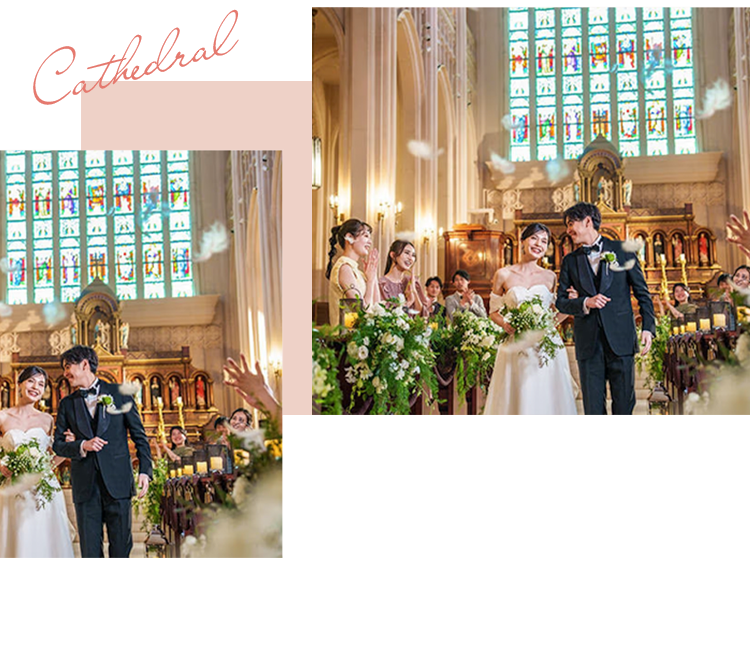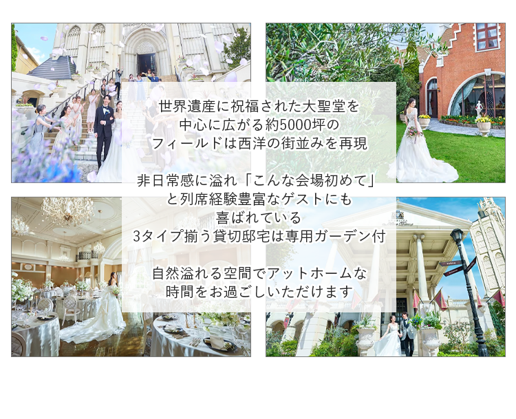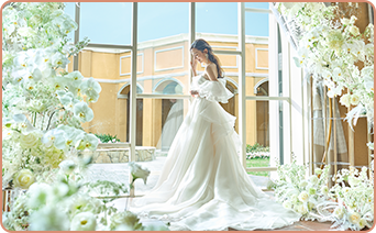 当館の敷地内には直営のフラワーショップ/写真スタジオ/ドレスサロン/パティシエ工房/レストランもあり、その専門職のスタッフがおふたりの専属担当として手厚くサポートいたします。