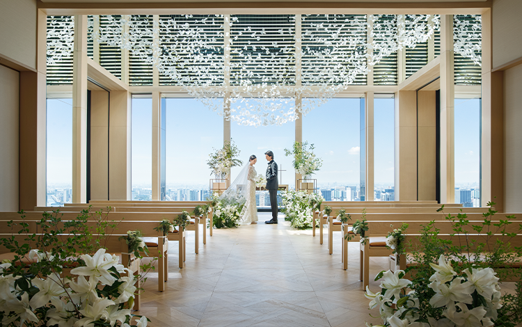 優しい自然光に満たされた 43 階の「SKY チャペル」は、永遠に心に刻まれる結婚式を叶える特別な場所。聖なる天空のチャペルで愛を誓い、おふたりの新しい物語が始まります。
